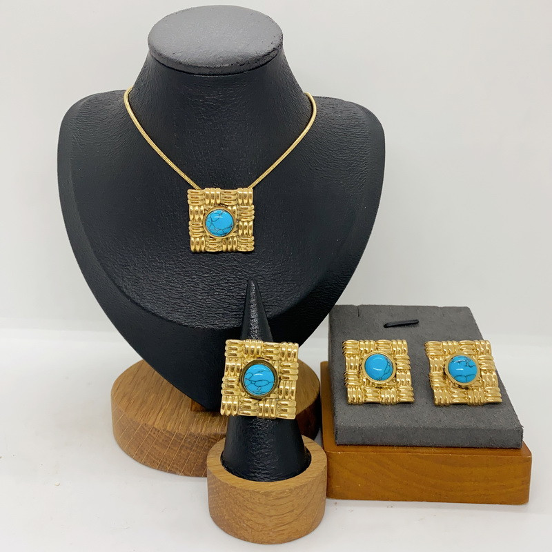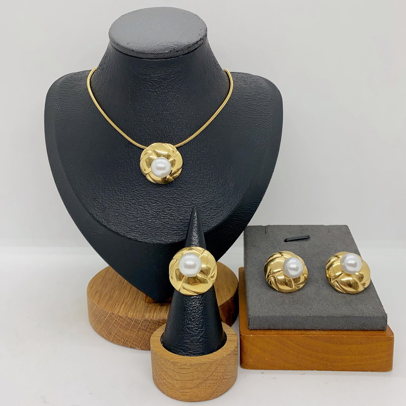 Women's Stainless Steel Fashion Jewelry Pendant Ring Earrings Set of ThreeKS231305-LXWholesale Price: