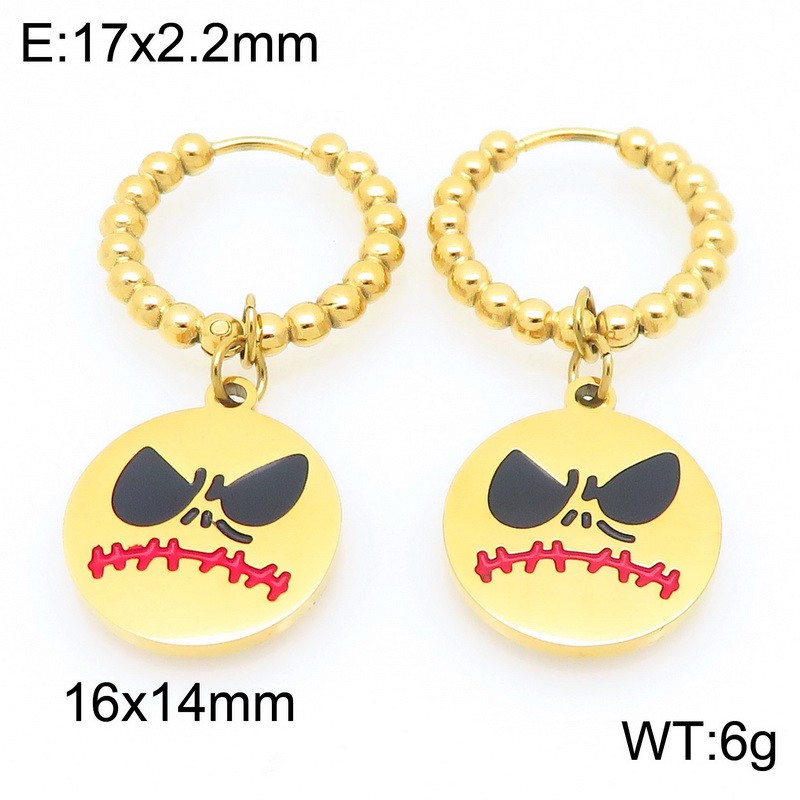 Stainless steel creative Halloween series parody angry expression circular pendant temperament gold earringsKE121147-ZWholesale Price: