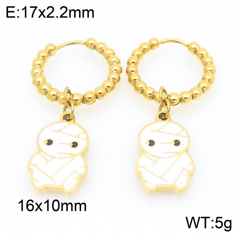 Stainless steel creative Halloween series white mummy pendant temperament gold earringsKE121151-ZWholesale Price: