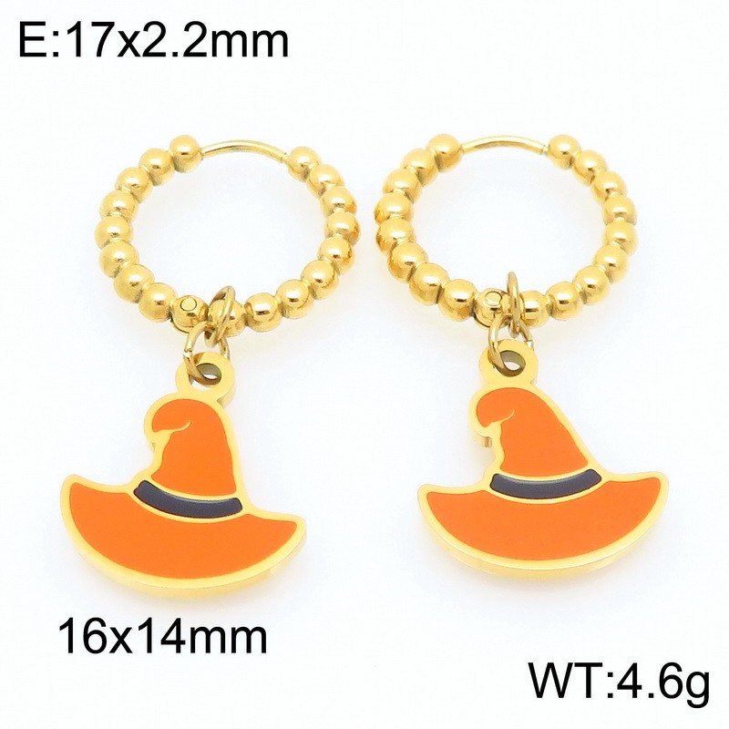 Stainless steel creative Halloween series parody hat pumpkin pendant temperament gold earringsKE121176-ZWholesale Price: