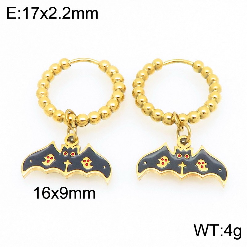 Stainless steel creative Halloween dark series ghost bat pendant temperament gold earringsKE121155-ZWholesale Price: