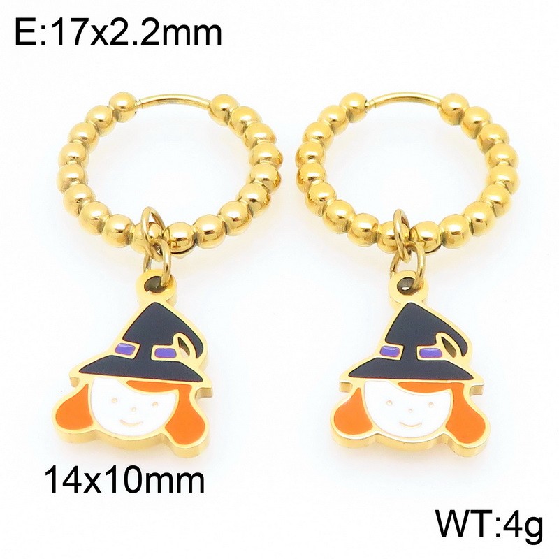 Stainless steel creative Halloween series witch pendant temperament gold earringsKE121167-ZWholesale Price: