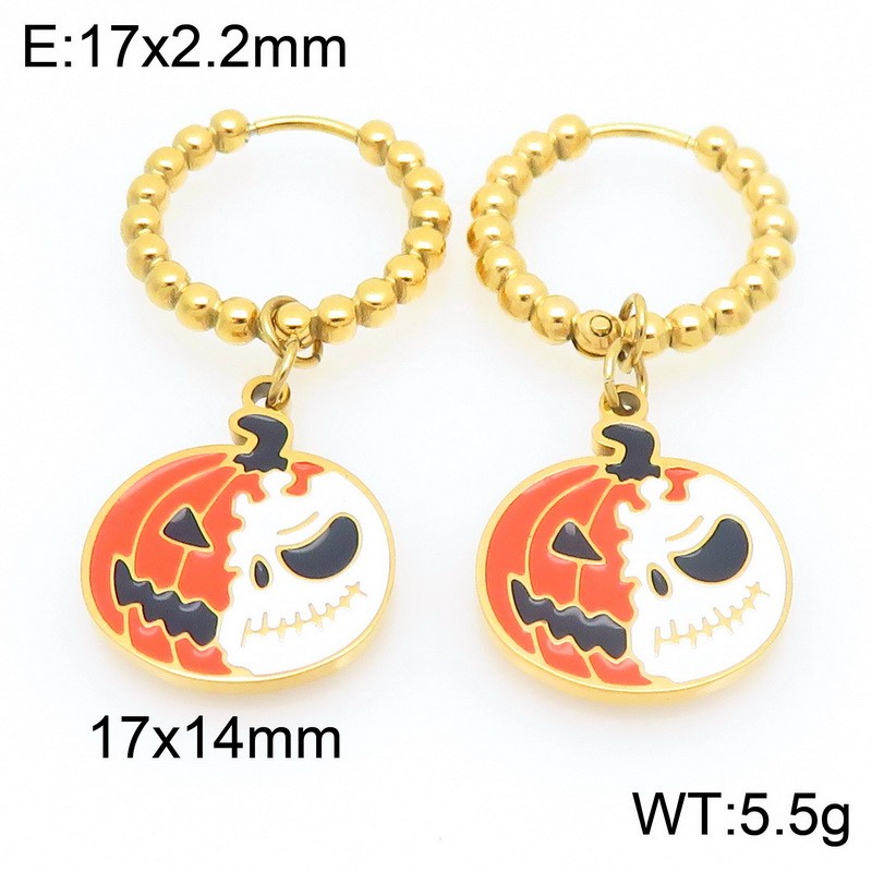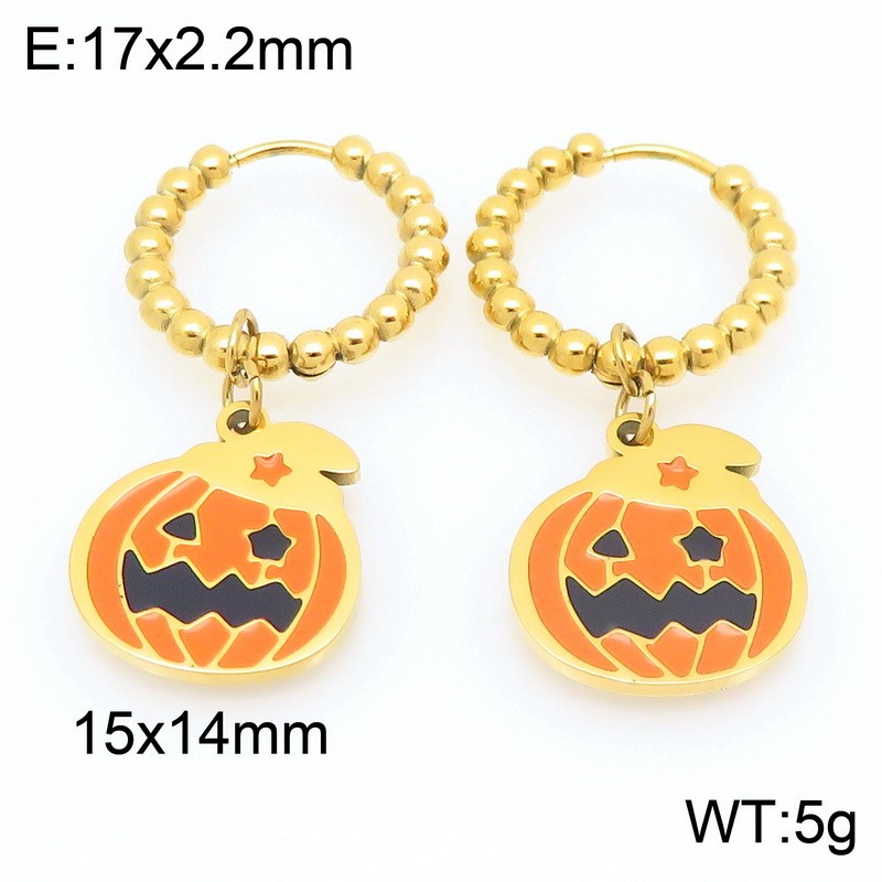 Stainless steel creative Halloween series fierce expression pumpkin pendant temperament gold earringsKE121162-ZWholesale Price: