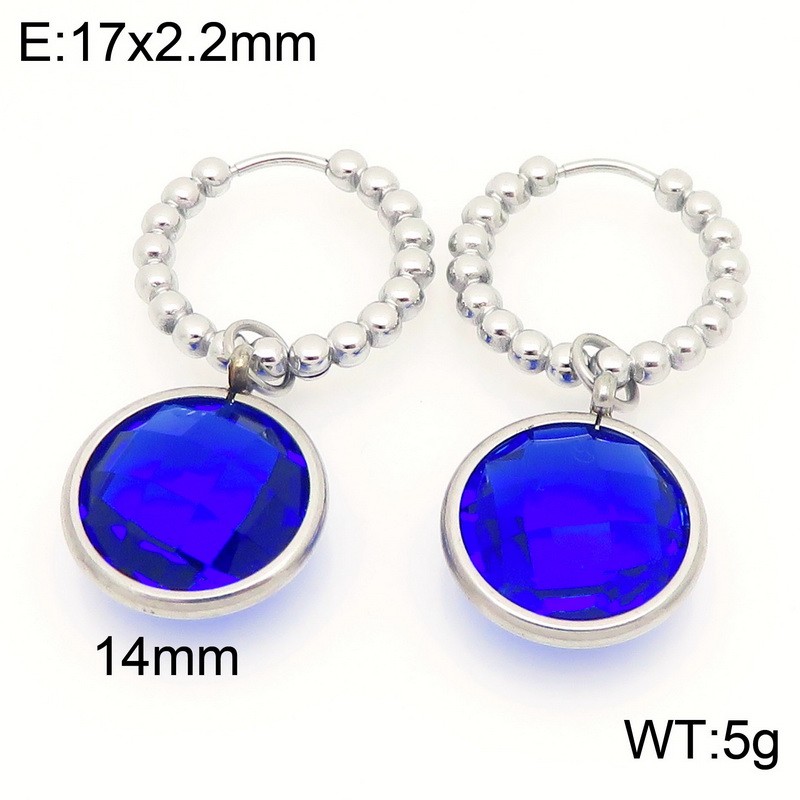 Fashionable stainless steel creative blue glass diamond circular pendant temperament silver earringsKE121179-ZWholesale Price: