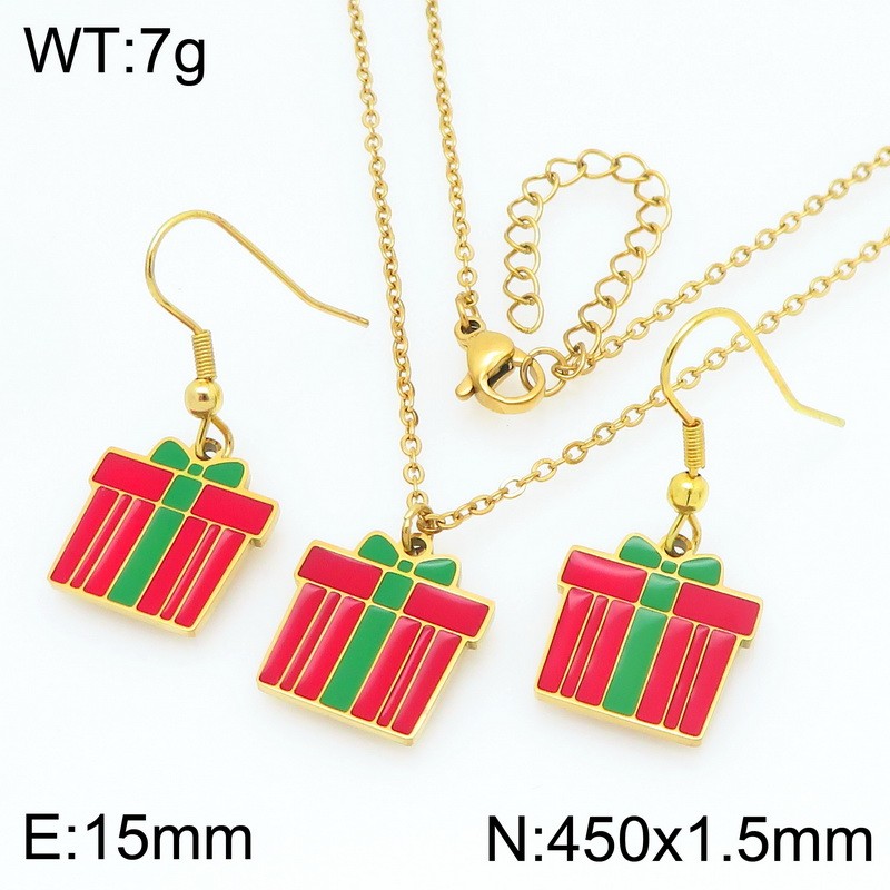 Fashionable and personalized stainless steel red gift box earrings necklace two-piece setKS229262-ZWholesale Price: