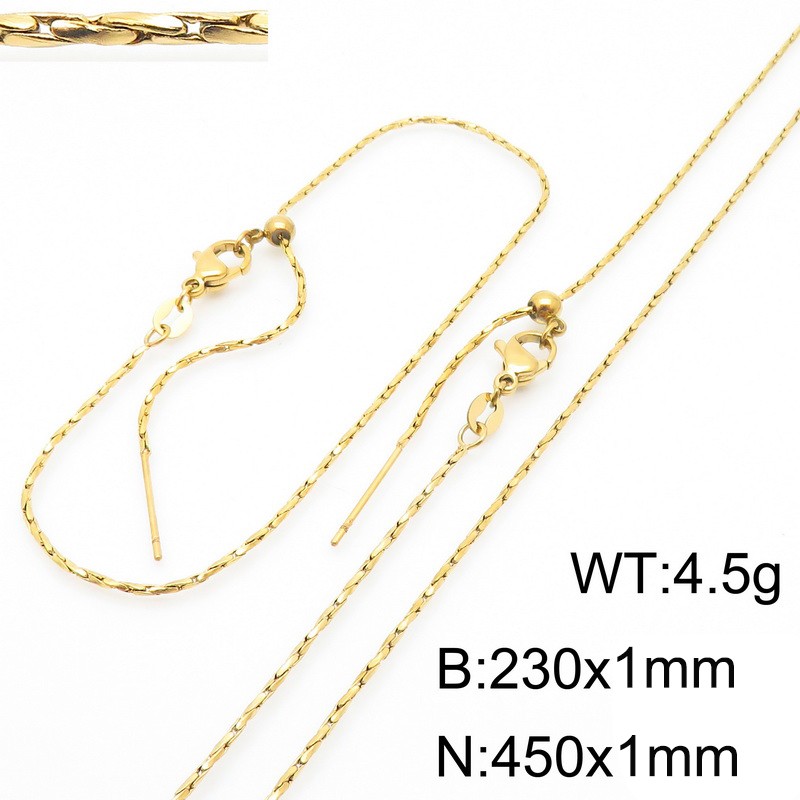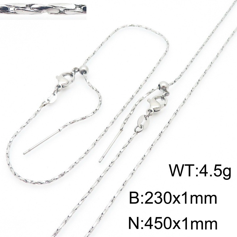 Fashionable and trendy stainless steel simple plain chain adjustable bracelet necklace two-piece setKS231322-ZWholesale Price: