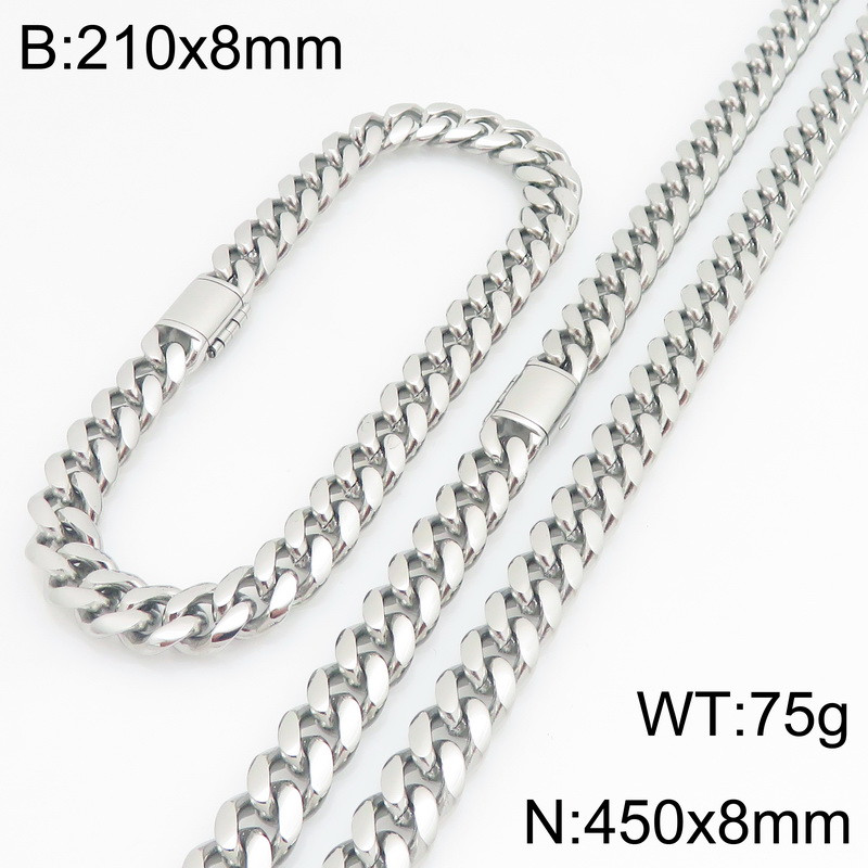Stainless Steel Chain Bracelet and Necklace Jewelry SetKS230283-ZWholesale Price: