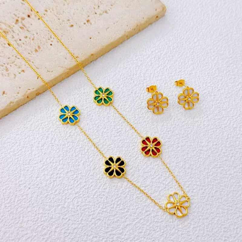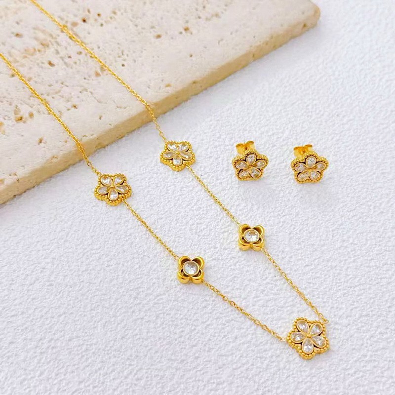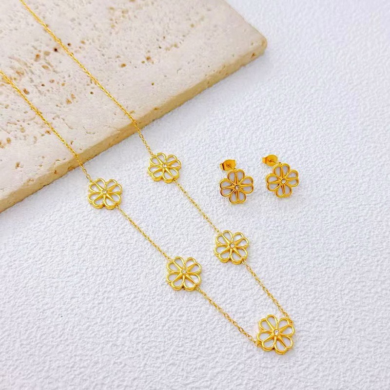 Stainless steel bracelet necklace heart-shaped gold hollow jewelry setKS57496-DRWholesale Price: