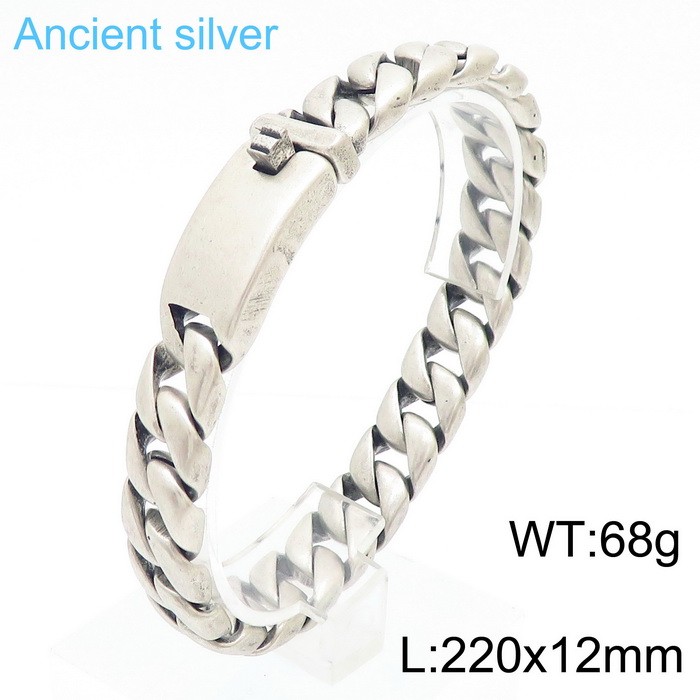 12mm Curb Cuban Chain Ancient Silver Stainless Steel BraceletKB170065-KJXWholesale Price: