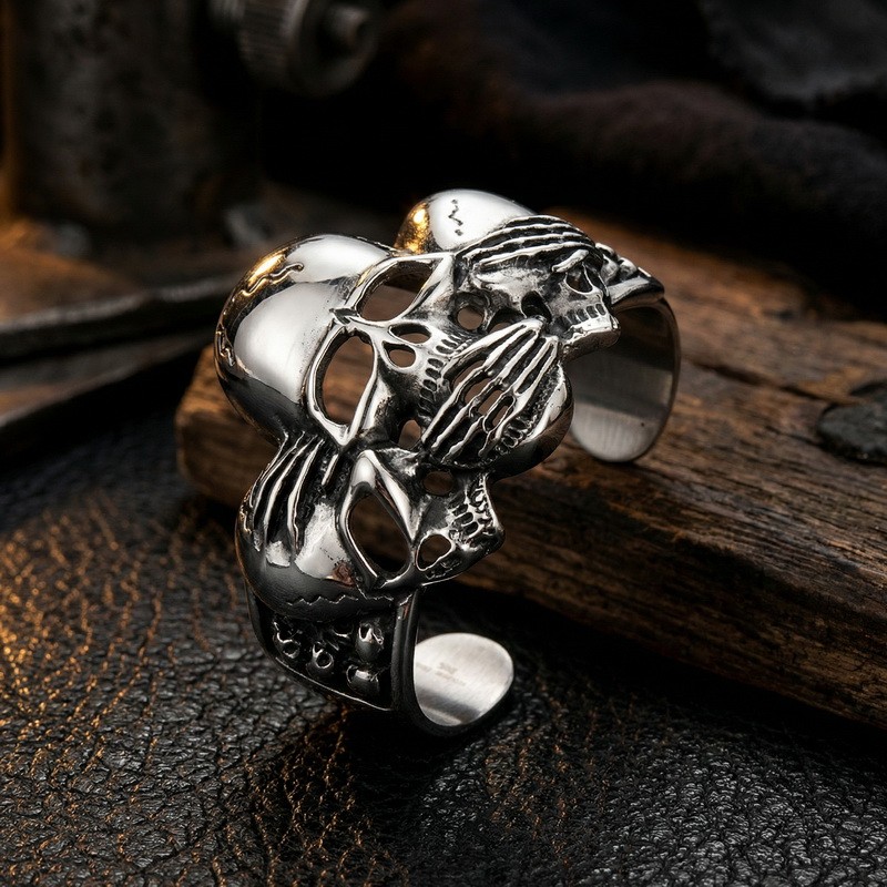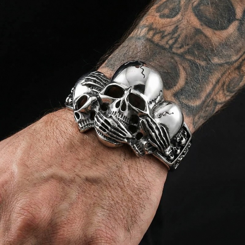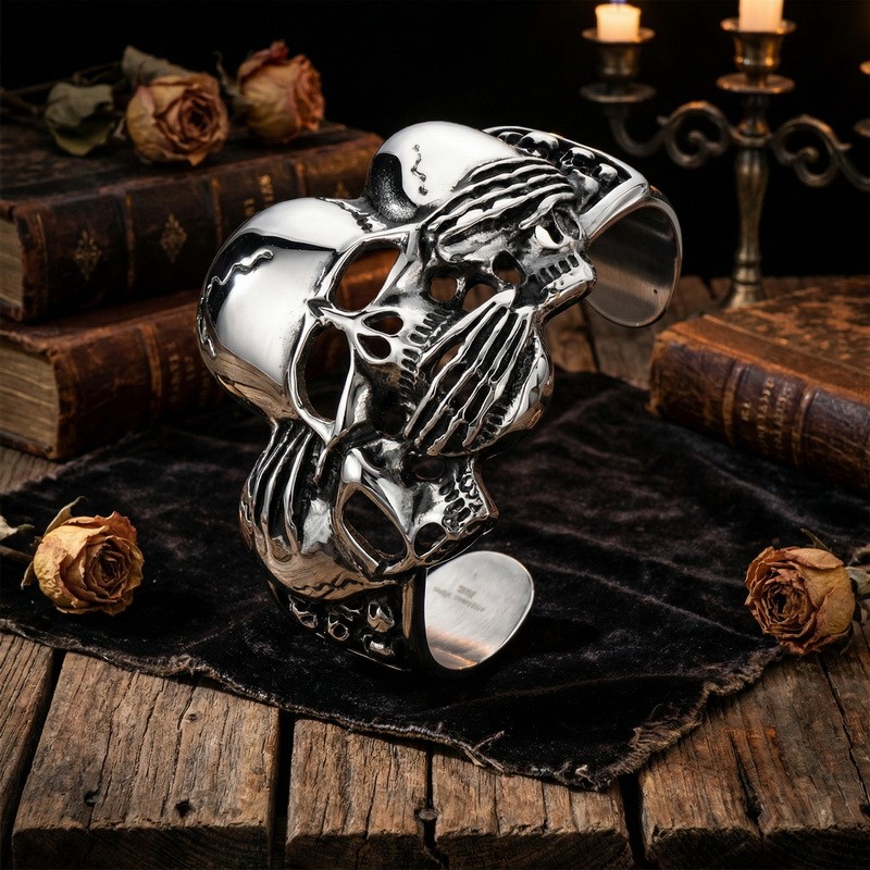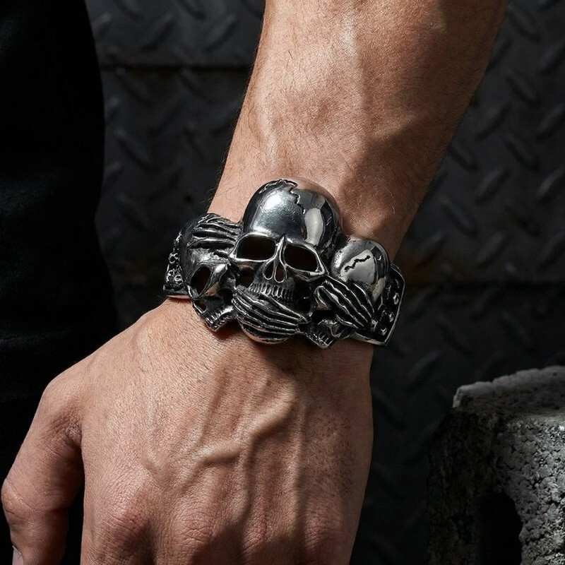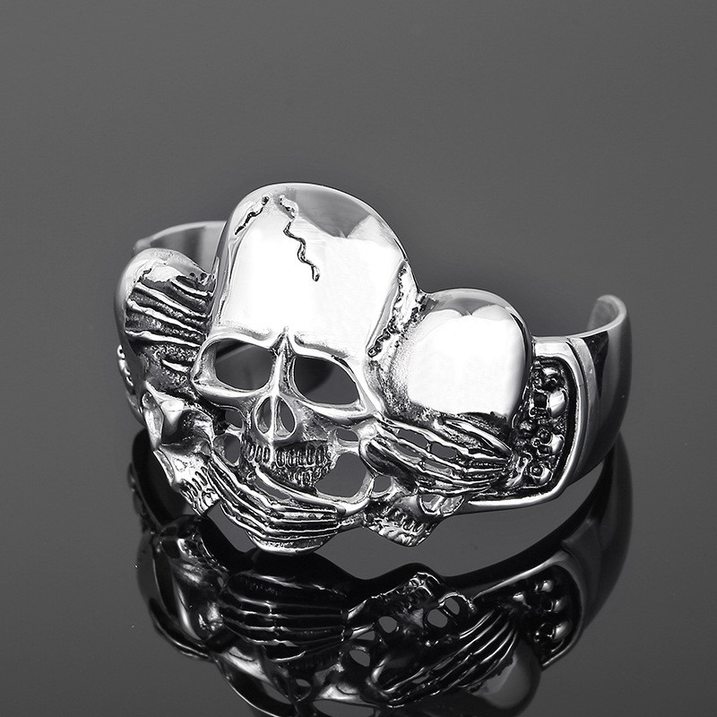 - Skeleton head hollow wide open bracelet Stainless Skull Bangle