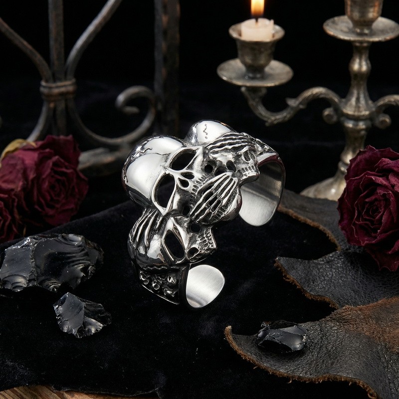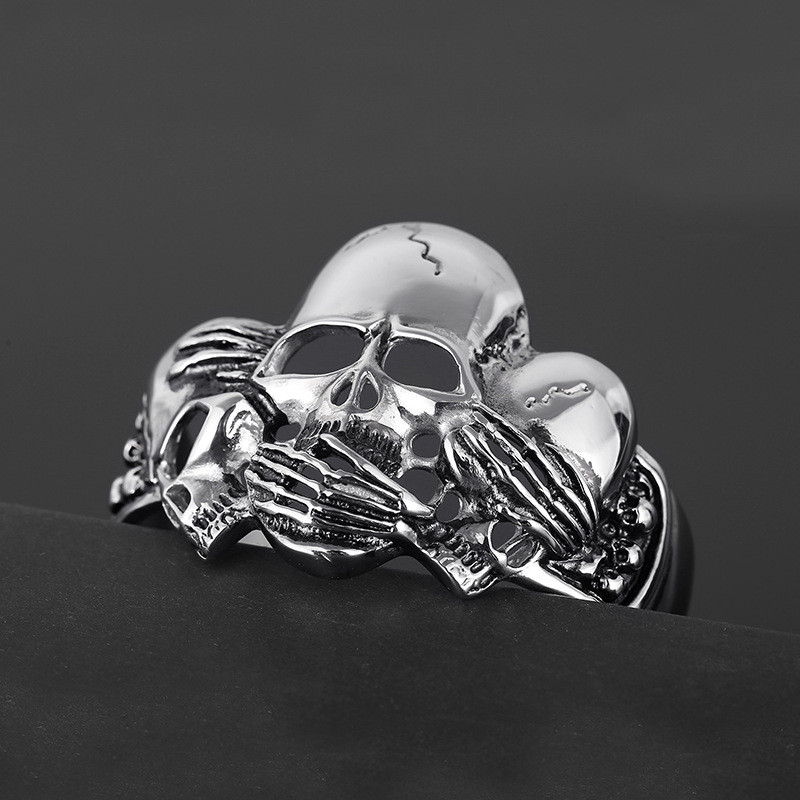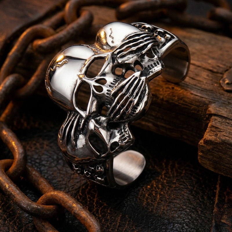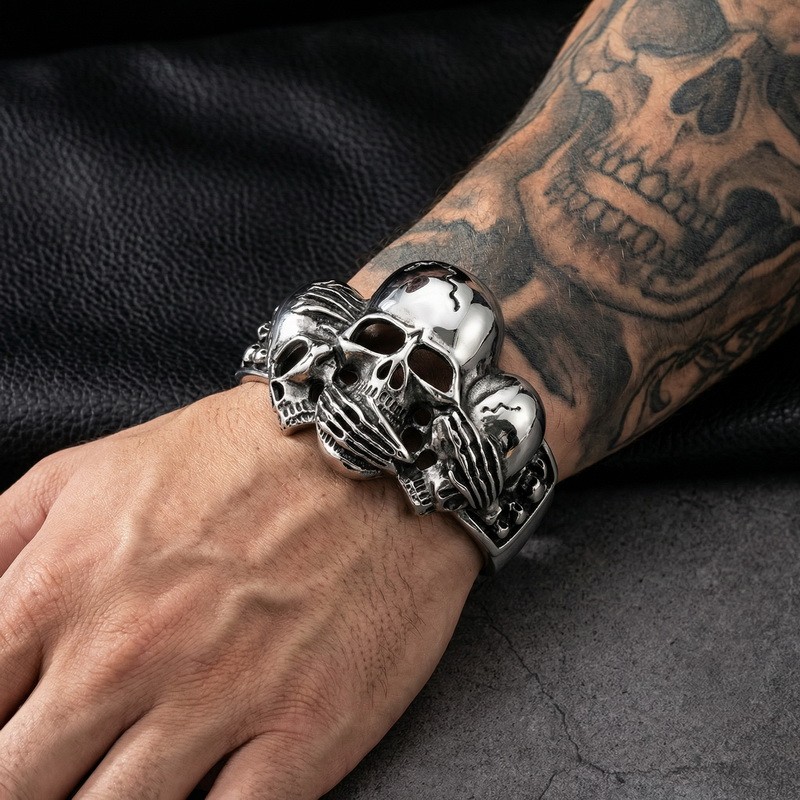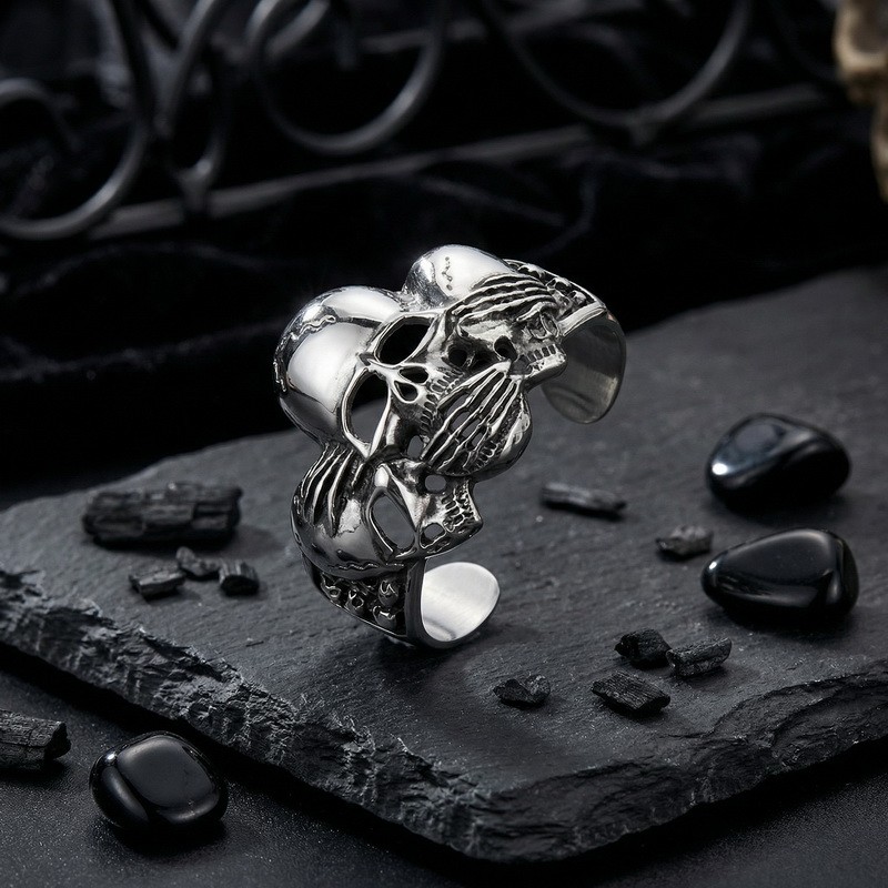 - Skeleton head hollow wide open bracelet Stainless Skull Bangle
