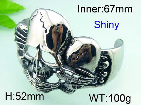 Skeleton head hollow wide open bracelet Stainless Skull BangleWholesale Price: