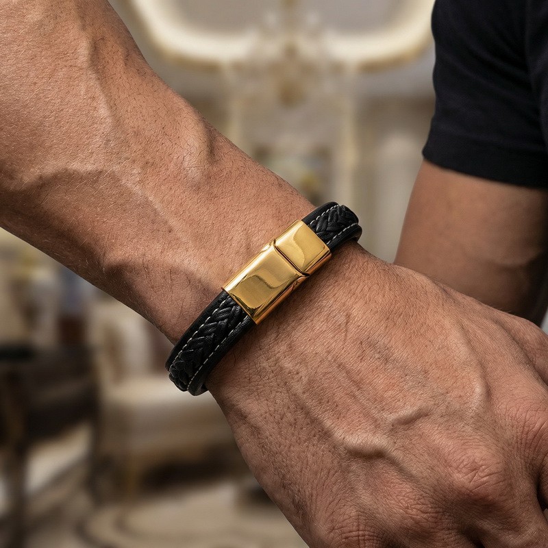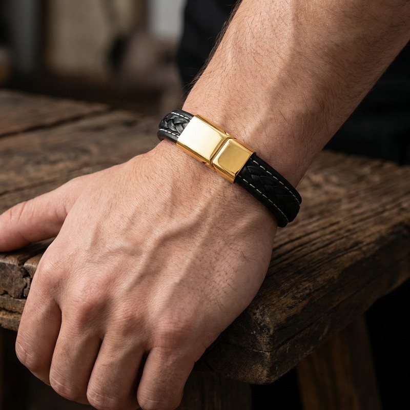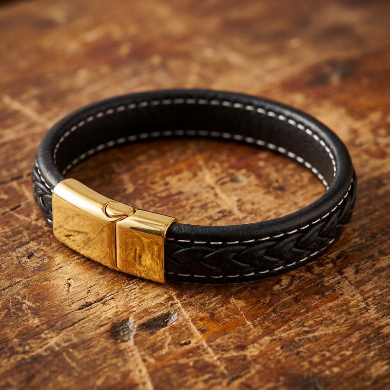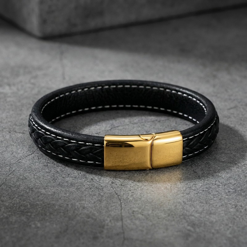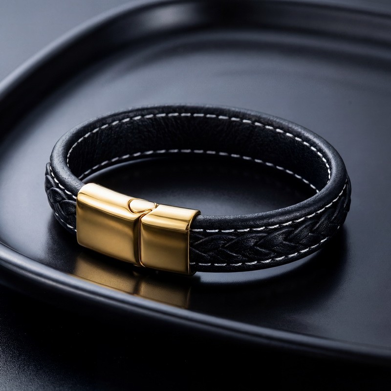 Stainless steel magnetic buckle paired with leather bracelet