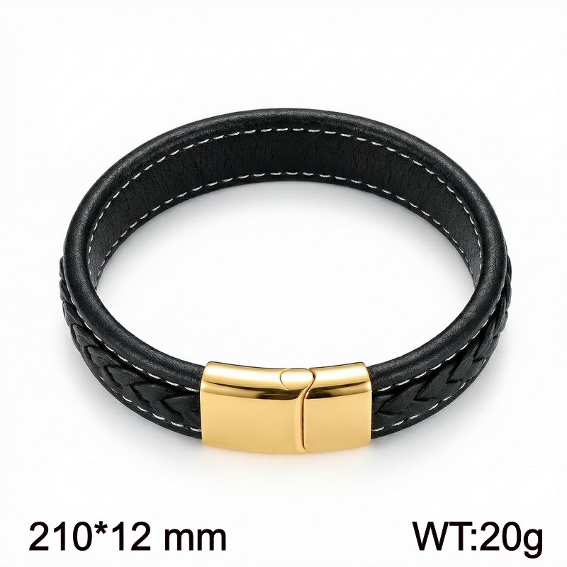 Stainless steel magnetic buckle paired with leather bracelet, fashion jewelryWholesale Price: