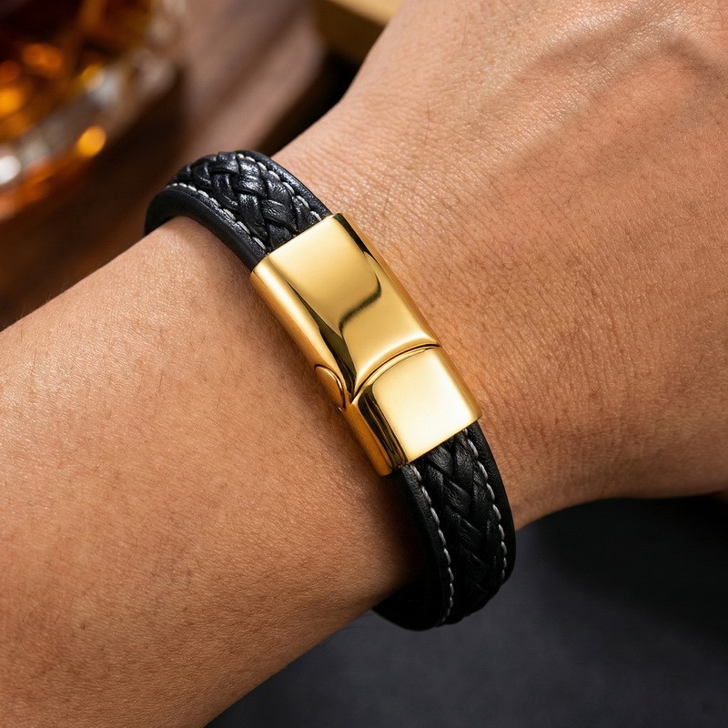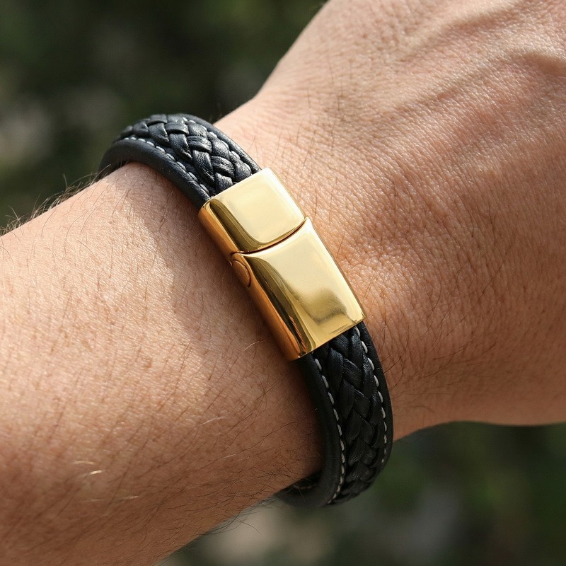 - Stainless steel magnetic buckle paired with leather bracelet