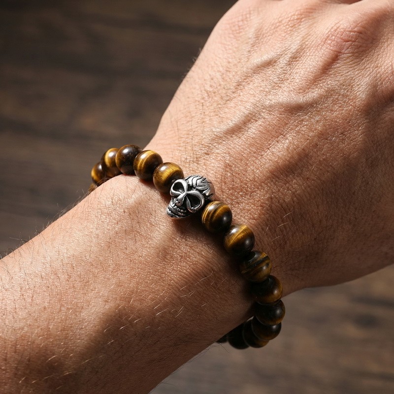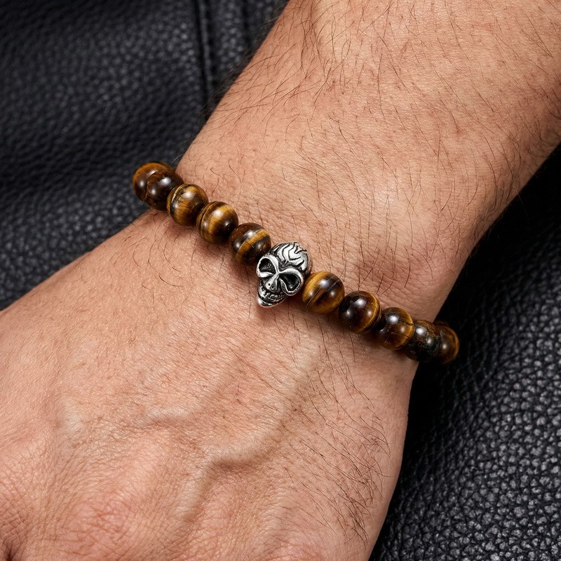 Men's stainless steel cast skull with bead braceletWholesale Price: