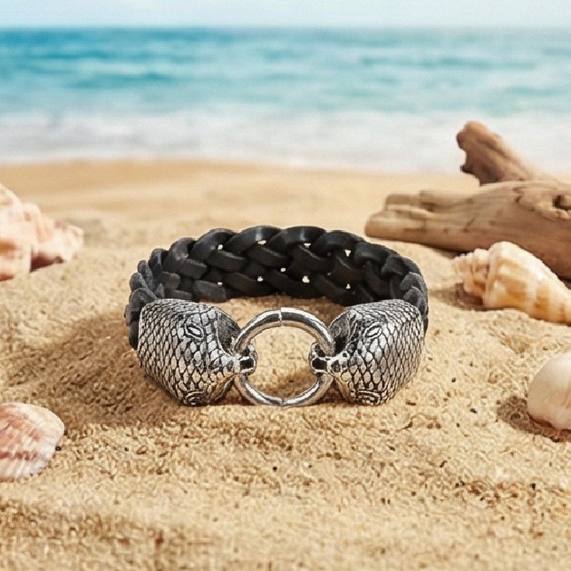 - Stainless Steel Leather Bracelet