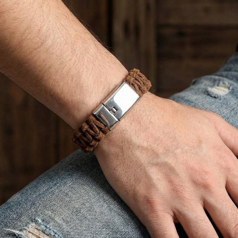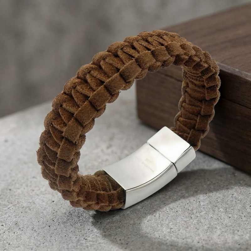Stainless steel buckle paired with leather bracelet for fashionable jewelryWholesale Price: