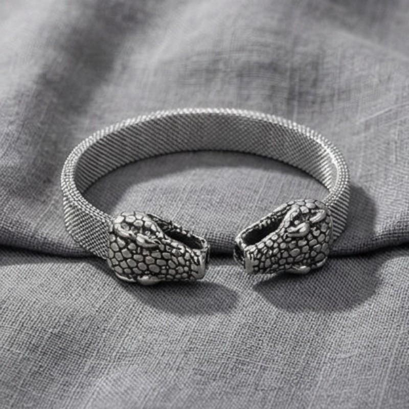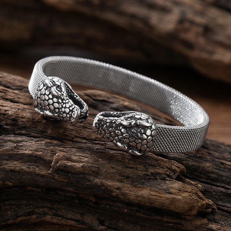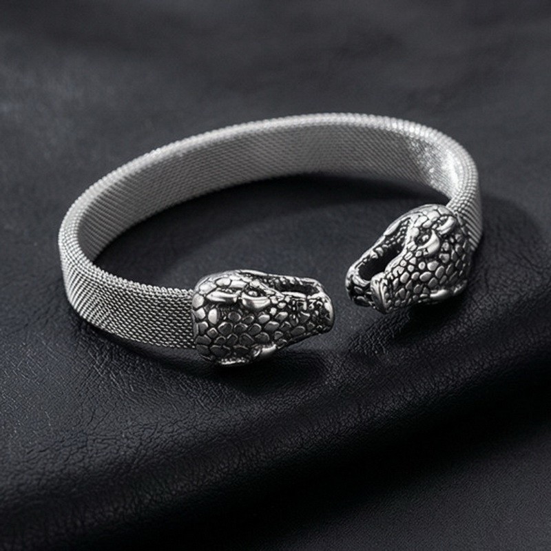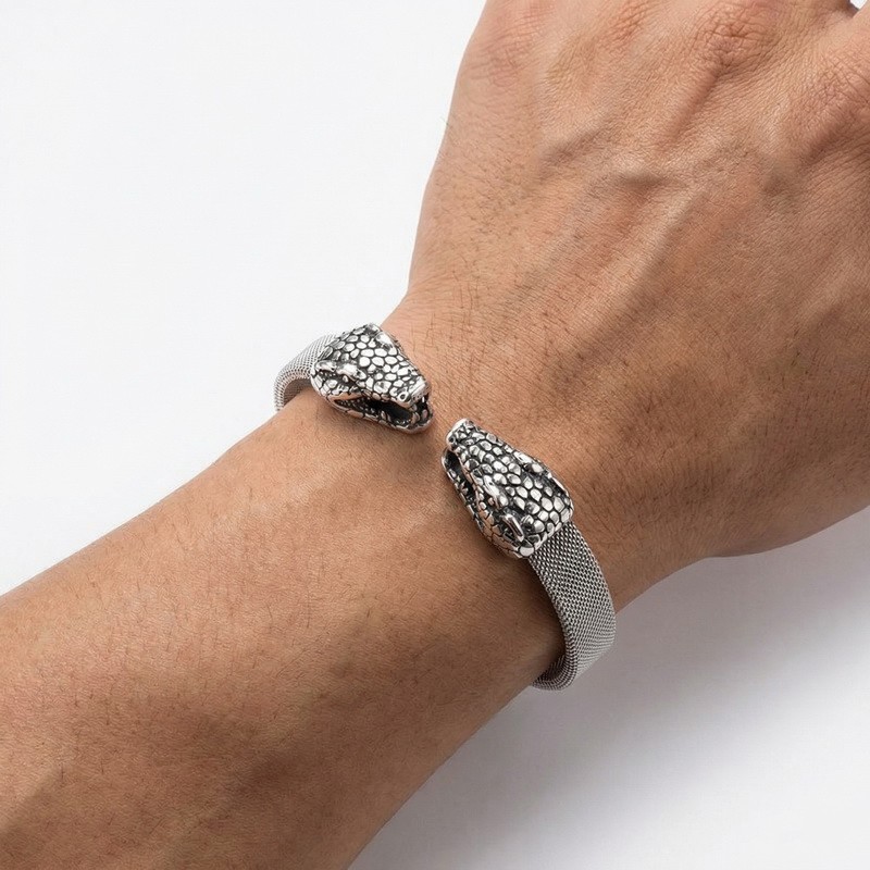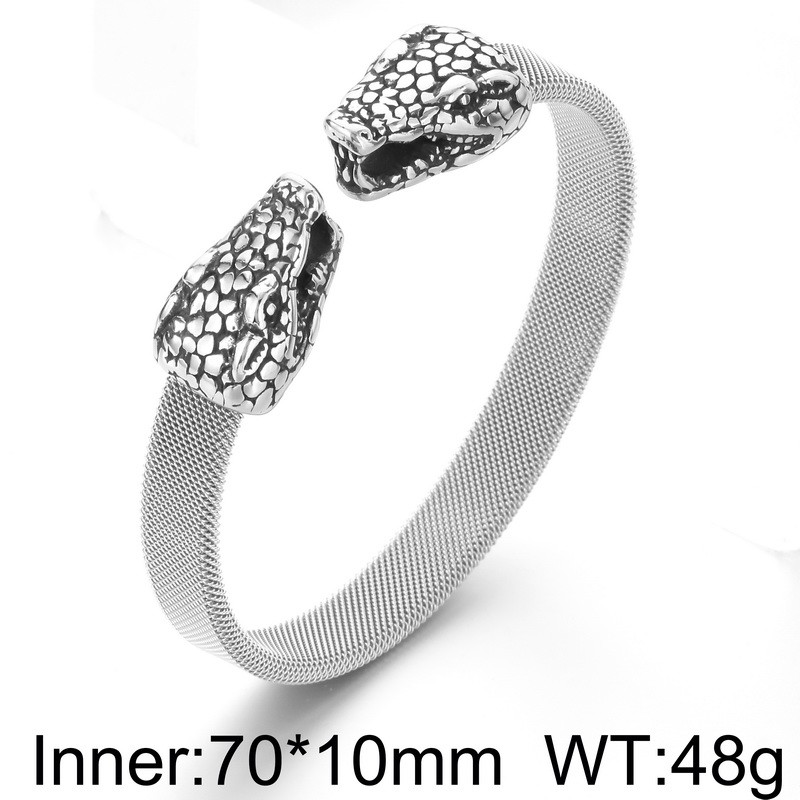 - Steel Mesh Double Head Snake Medusa Men's Bracelet Bangle