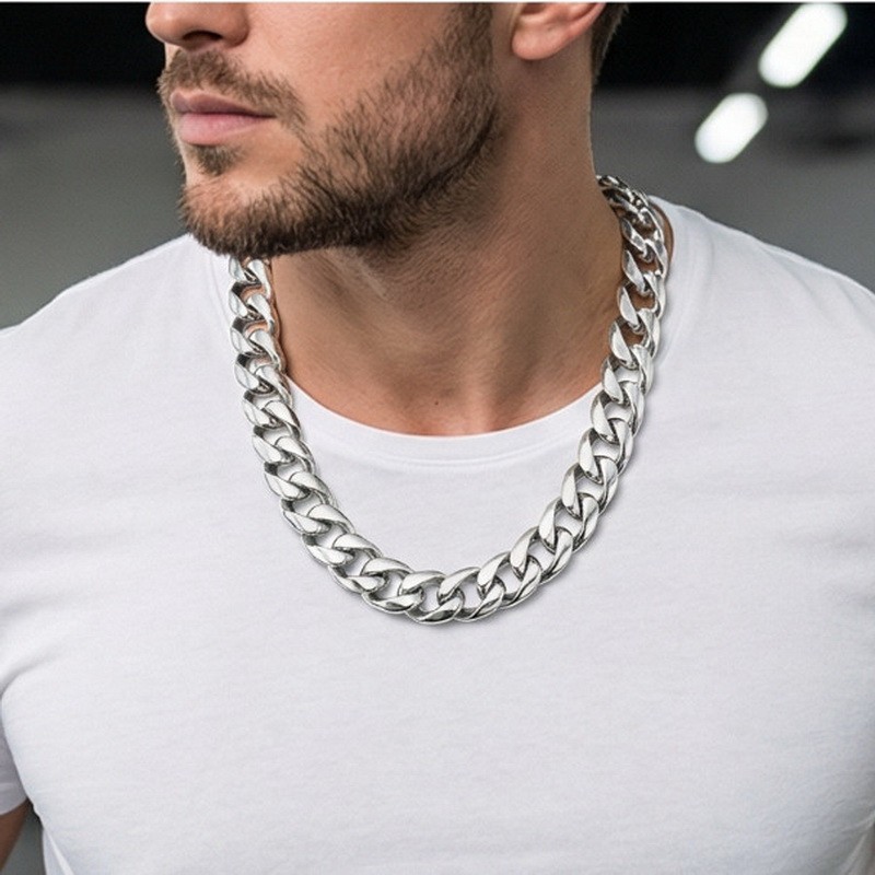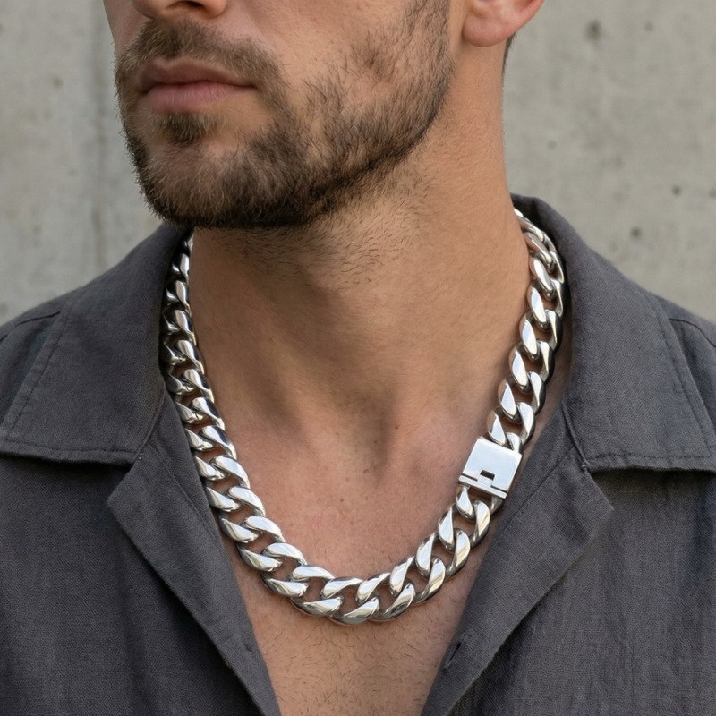 - Cast smooth rough necklace hip hop punk Cuban chain