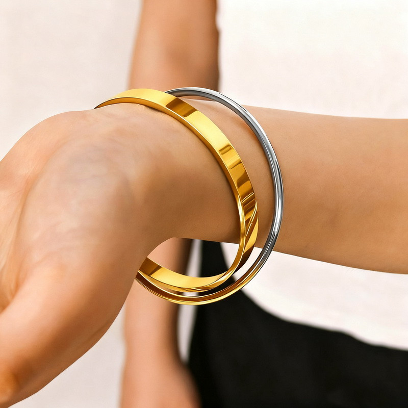 - Stainless Steel Interlocking Double Ring Smooth Surface Bangle