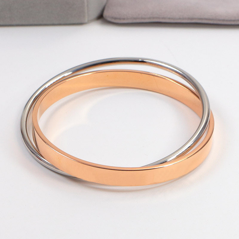 Stainless Steel Rose Gold-plating Interlocking Double Ring Smooth Surface BangleWholesale Price: US$6.46