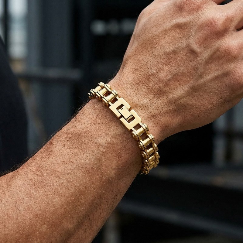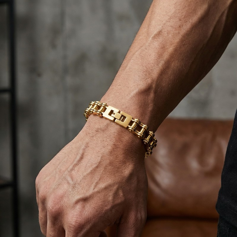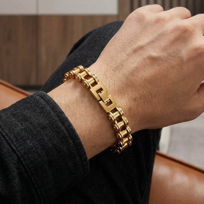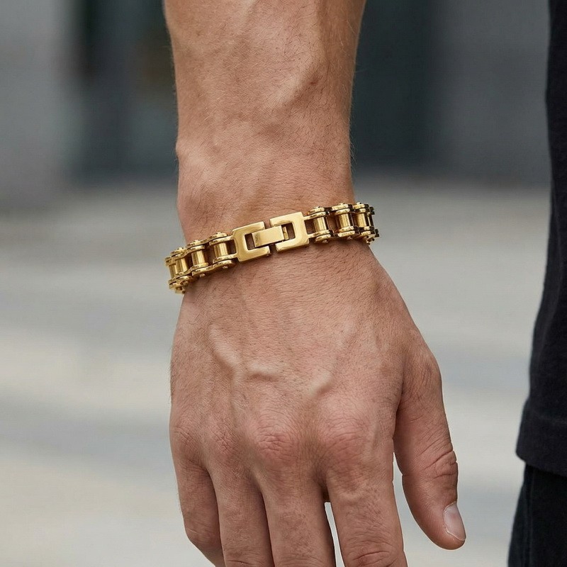 - Men's stainless steel jewelry bike chain style bracelet