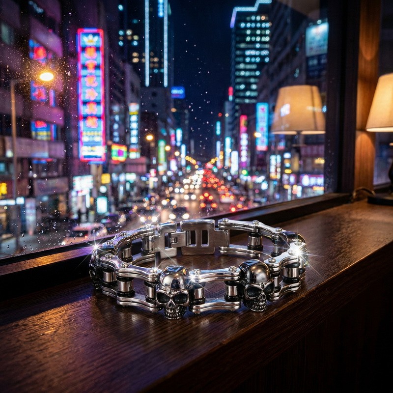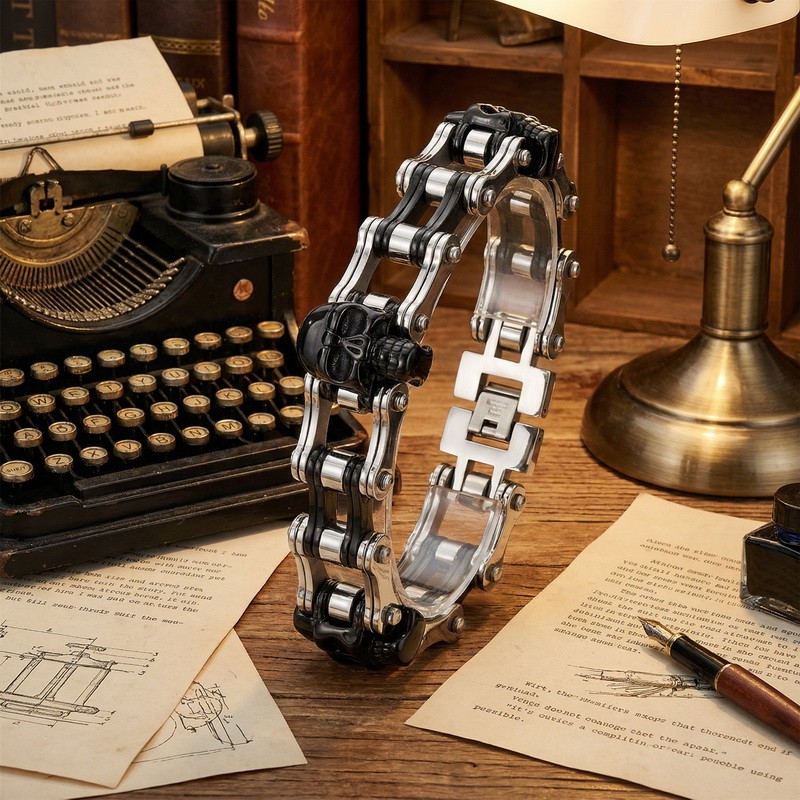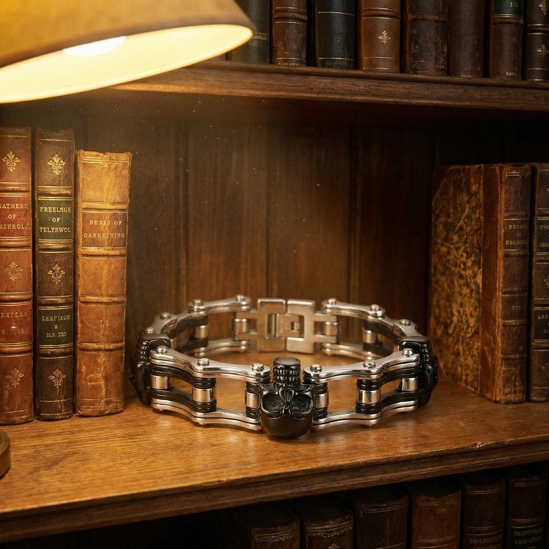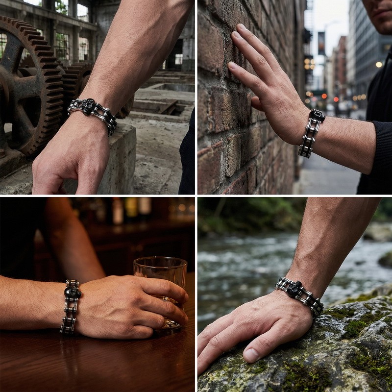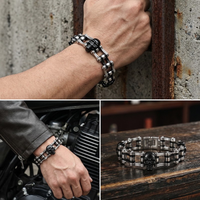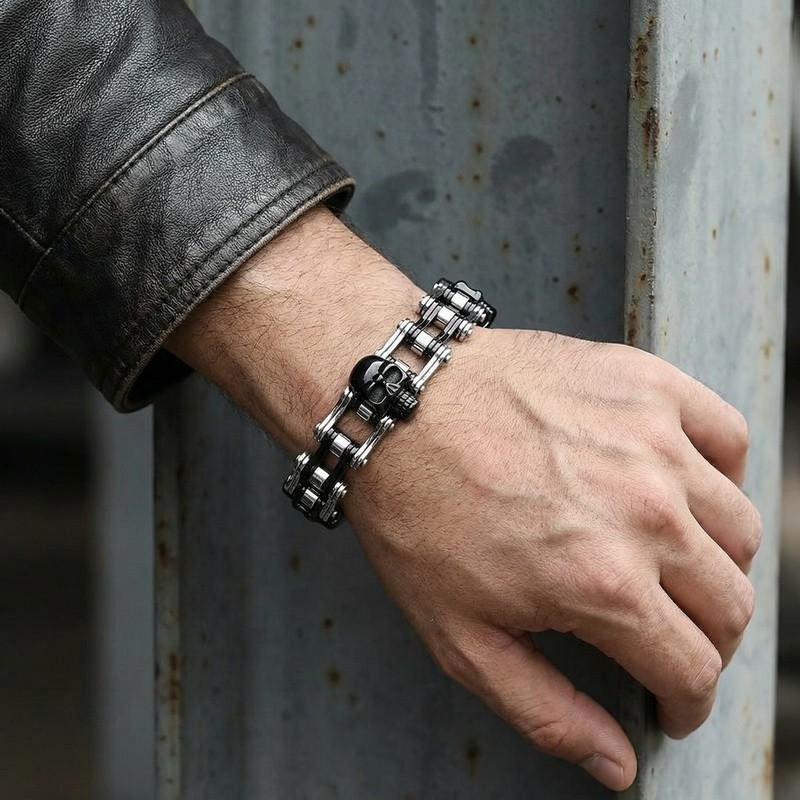 - Stainless Steel Men's Bike Chain Bracelet with Hip-Hop Style