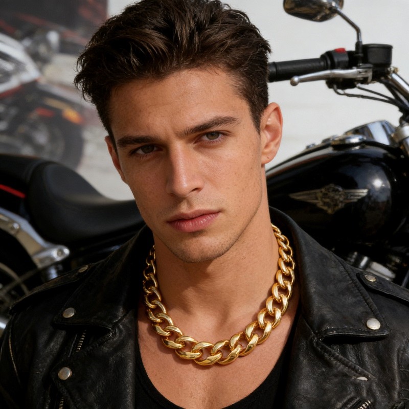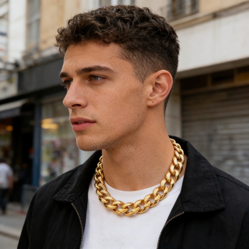 Gold Polished Men's Thick Necklace Thick Dog Chain