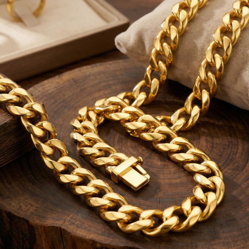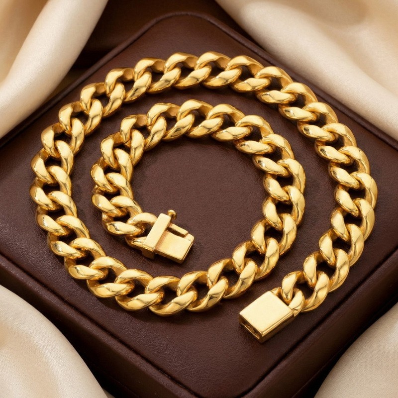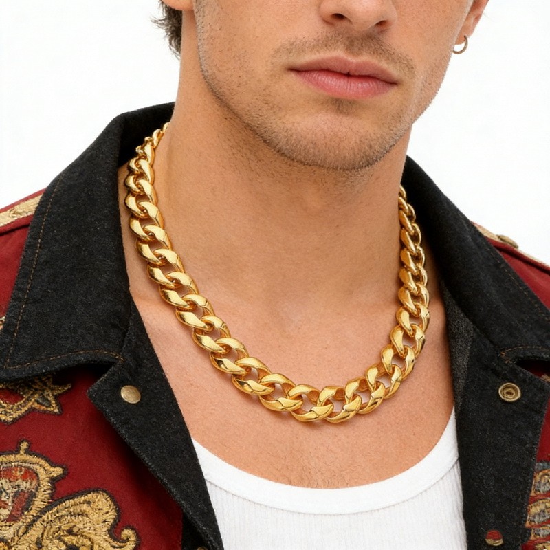 - Gold Polished Men's Thick Necklace Thick Dog Chain