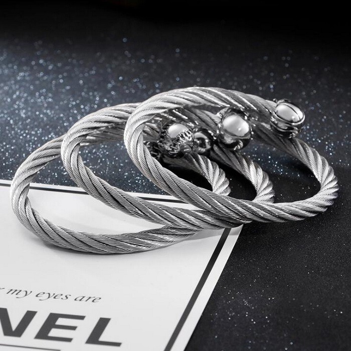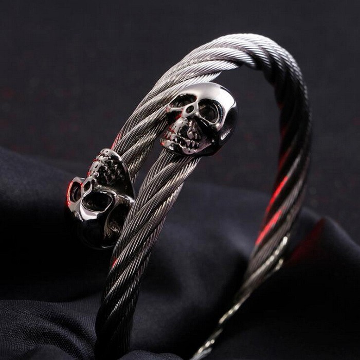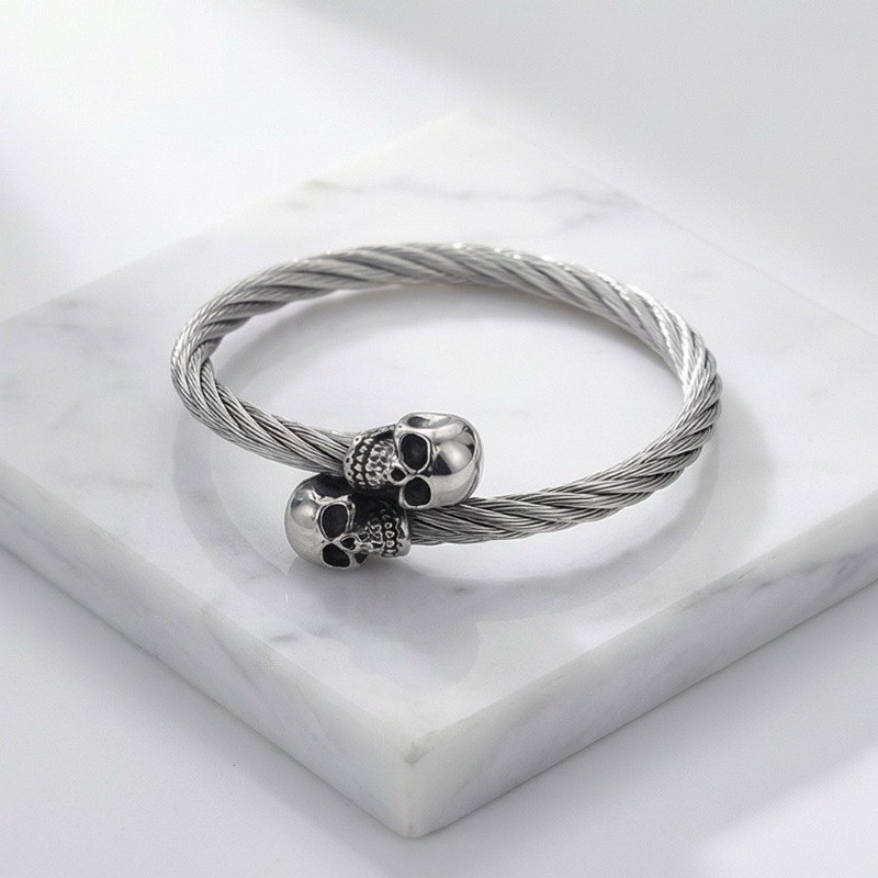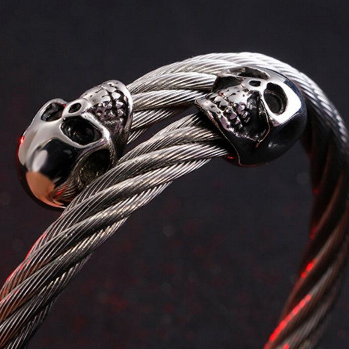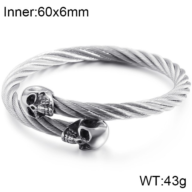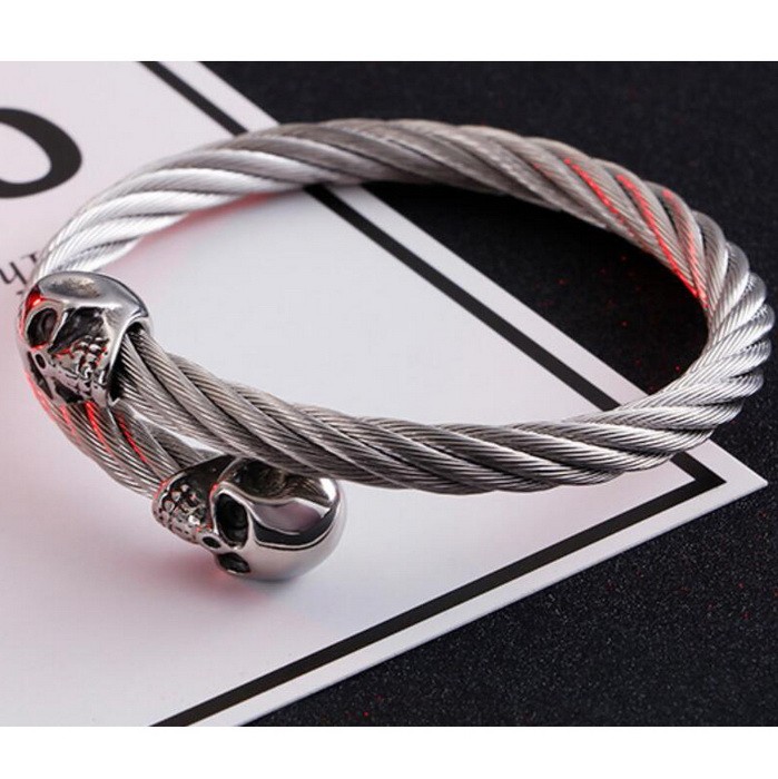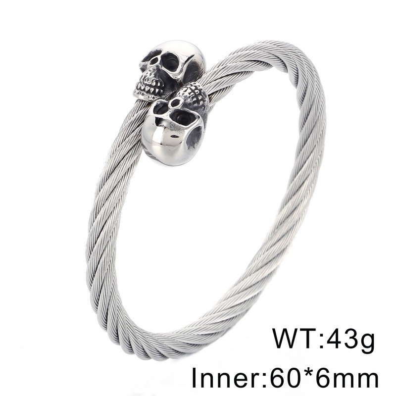 - Punk Stainless Steel Men's Wire Skull Via Bangle