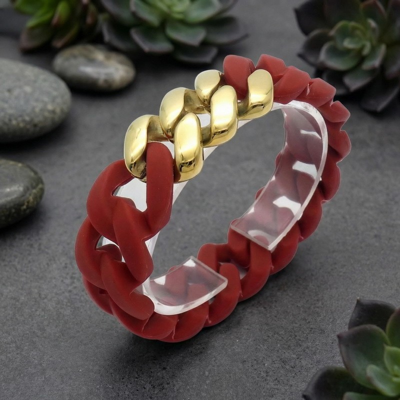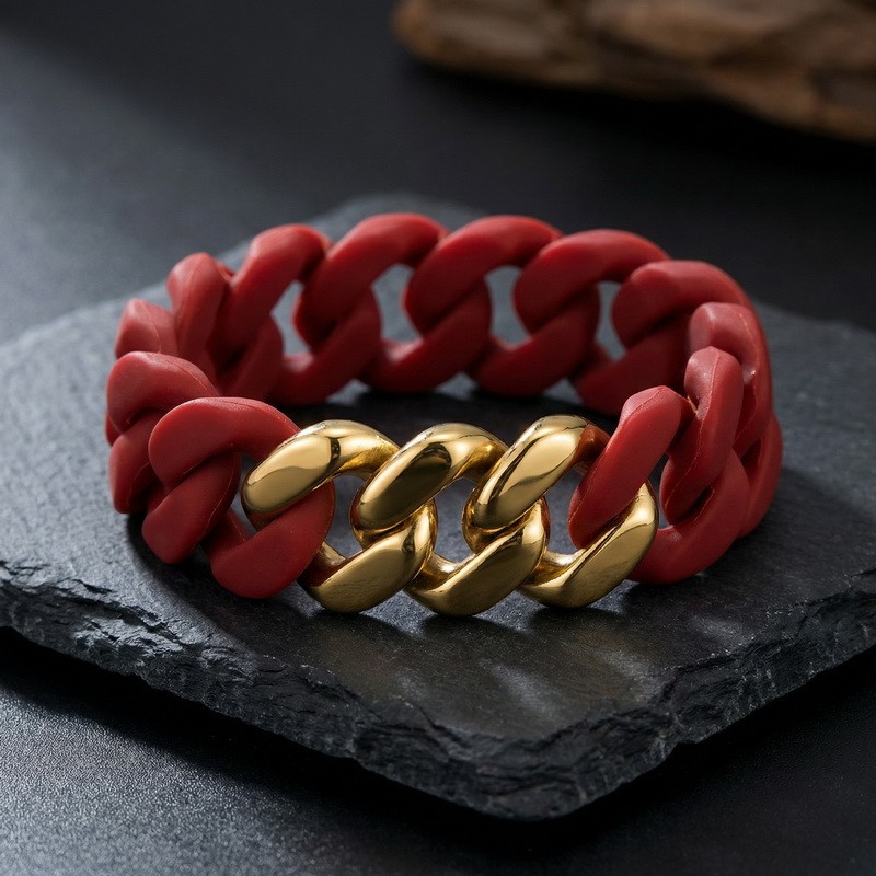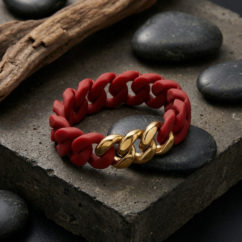 Stainless steel Cuban chain paired with silicone bracelet