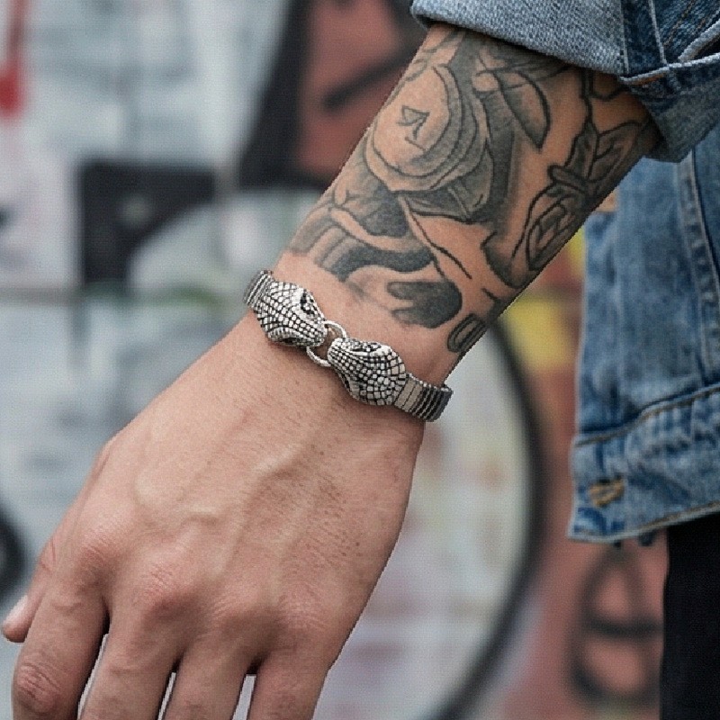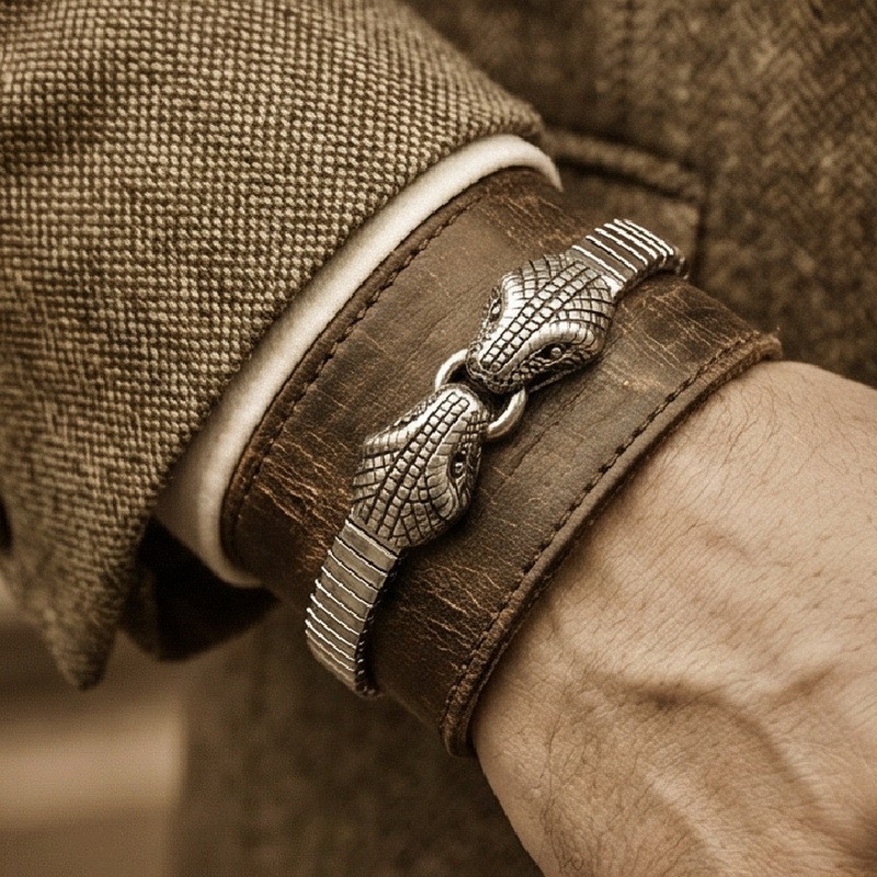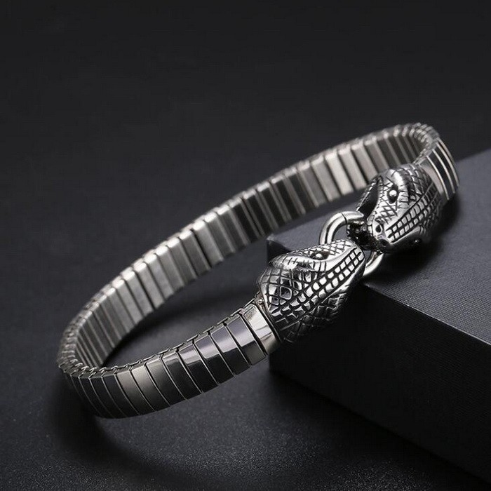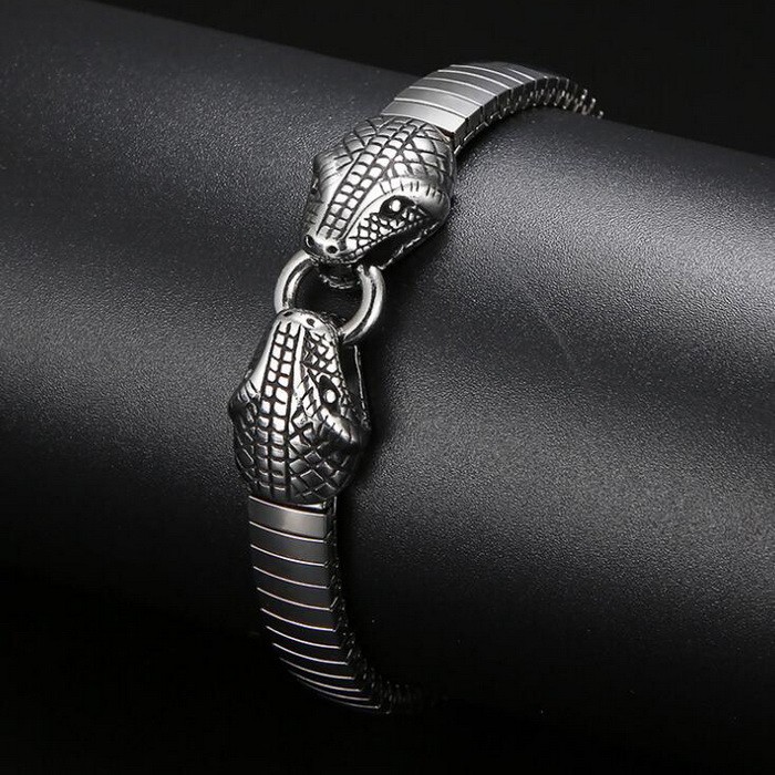 - Double Snakehead Punk Style Stretch Men's Bracelet