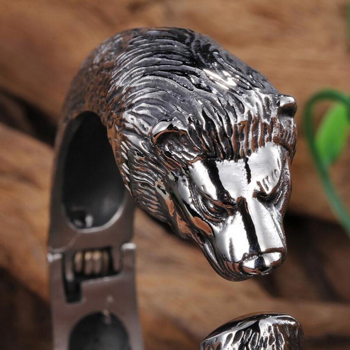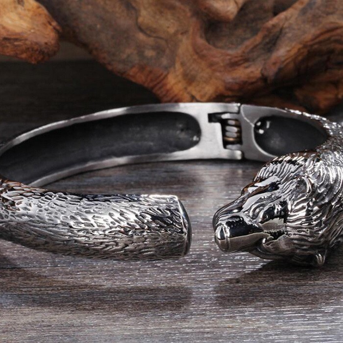 - Lion Stretch Open Men's Stainless Steel Bracelet