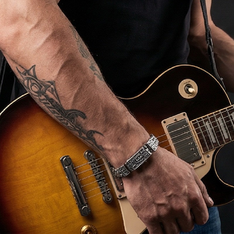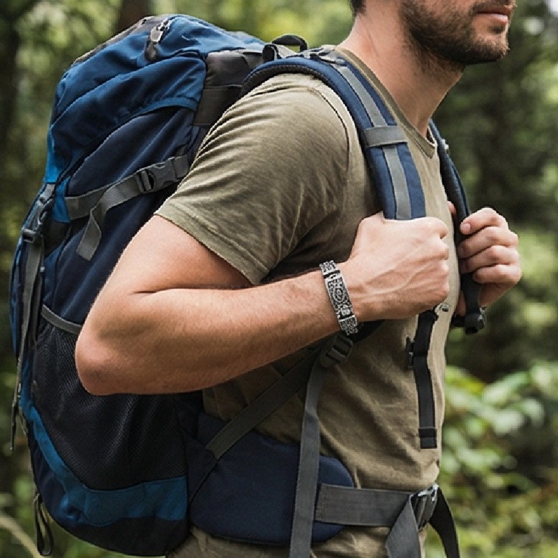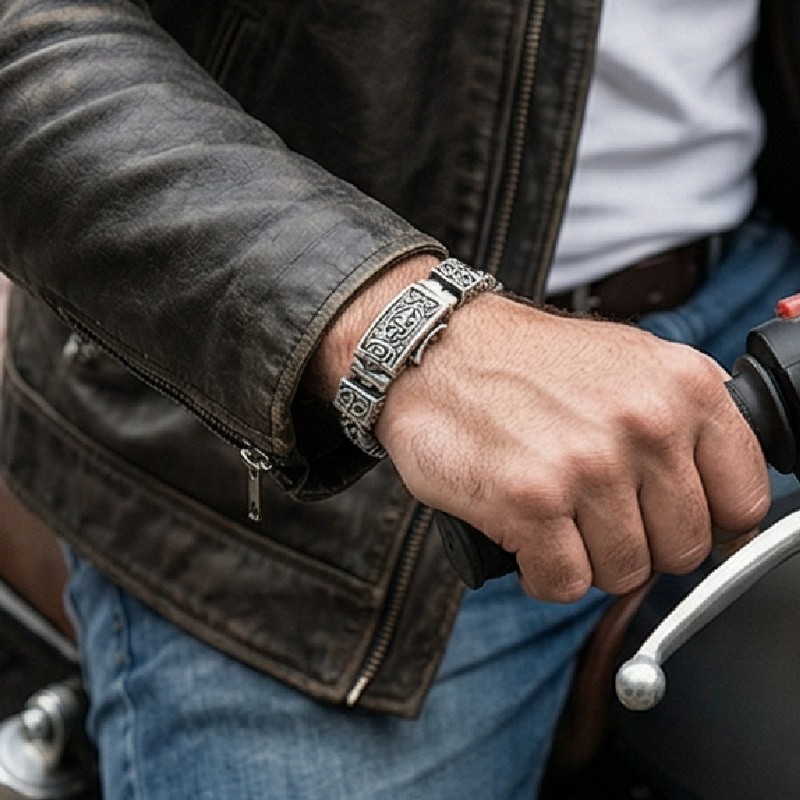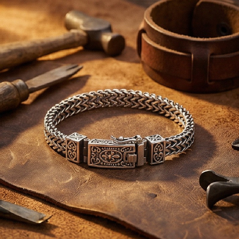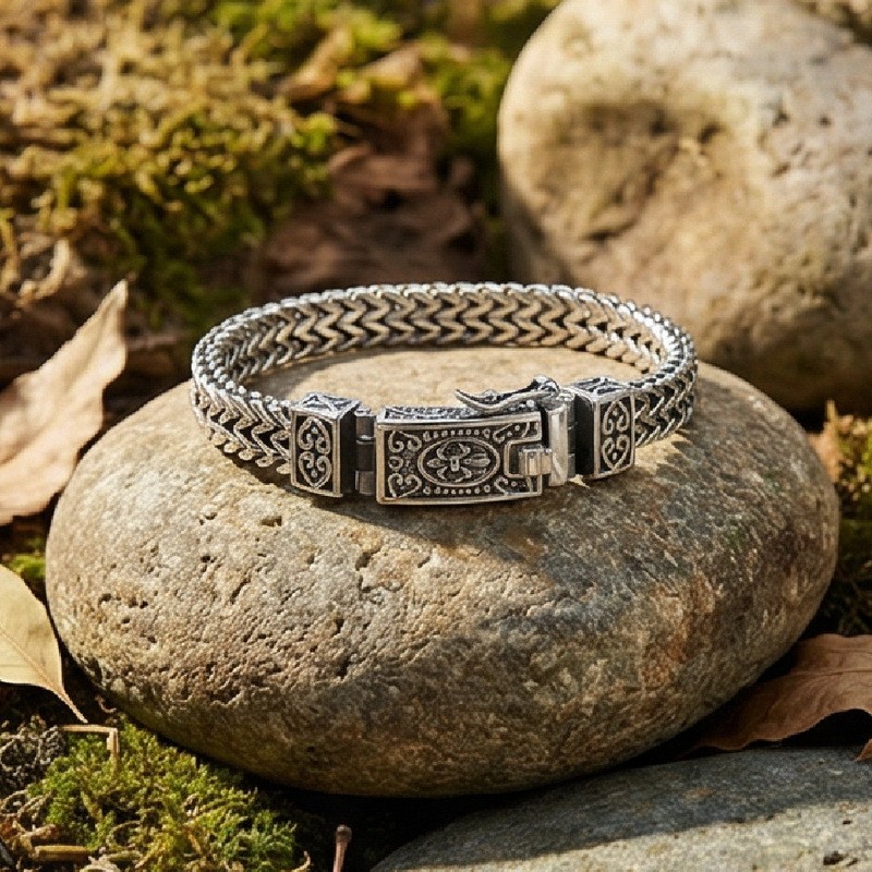 - Double Chain Oxidized Buckle Men's Pattern Bracelet