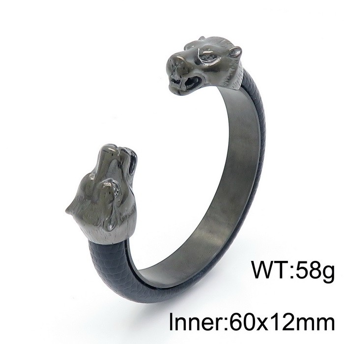 - Stainless Steel Leather Bangle