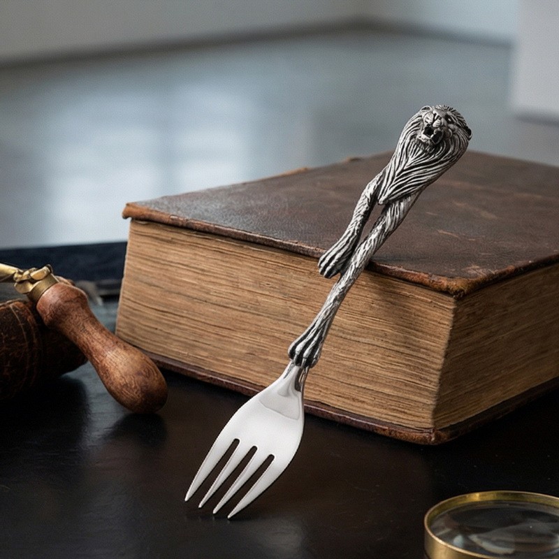 Stainless Steel Table Fork with Mighty Lion Handle