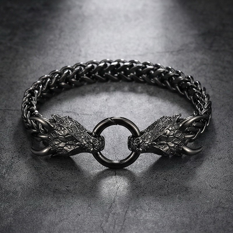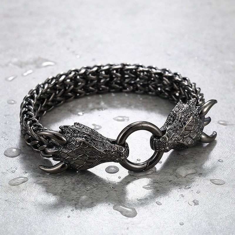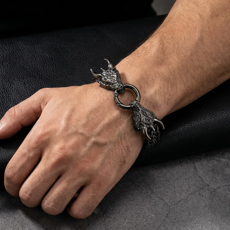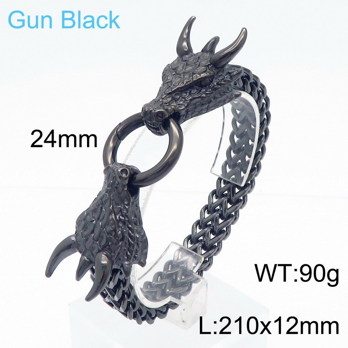- Men's stainless steel cast dragon bracelet jewelry gun black