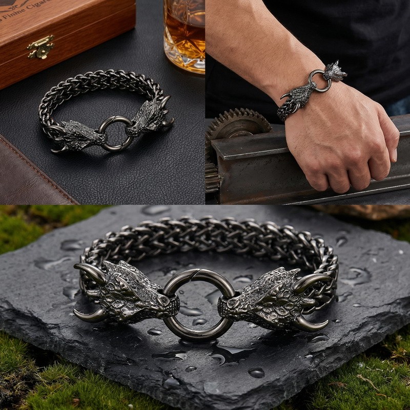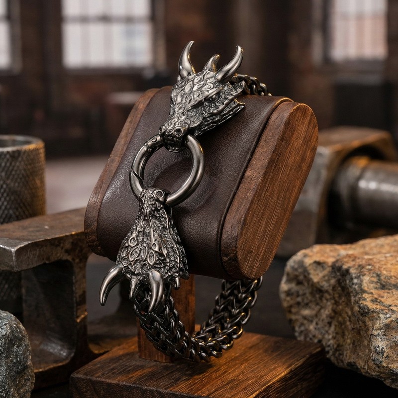 Men's stainless steel cast dragon bracelet, suitable for daily wear with animal-themed jewelryWholesale Price: