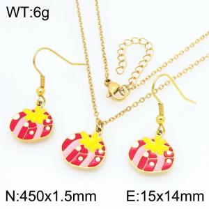 Fashionable and personalized stainless steel red gift box earrings necklace two-piece setWholesale Price: US$2.97