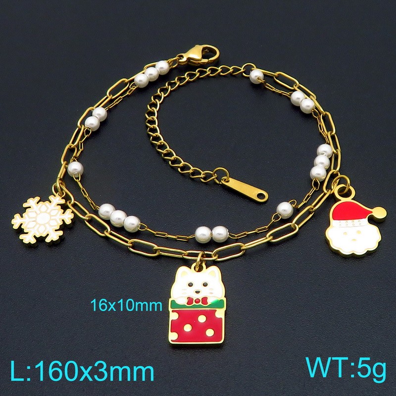 - Stainless Steel Gold-plating Christmas Snowflake Snowman Cat Bracelet