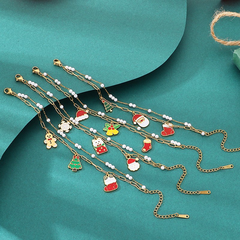 Stainless Steel Gold-plating Christmas Snowman Boots Christmas Tree BraceletWholesale Price: