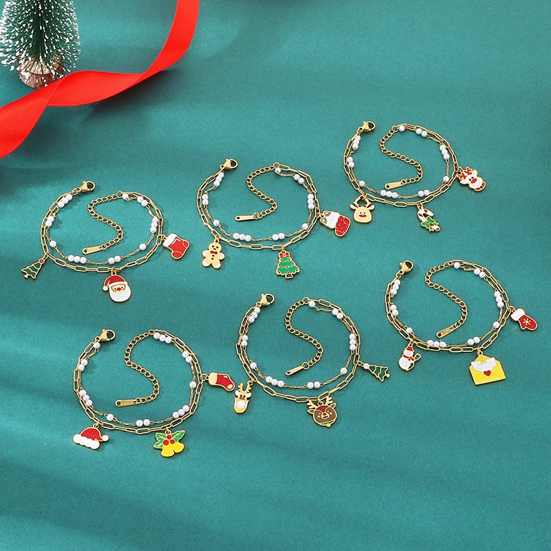 - Stainless Steel Gold-plating Christmas bells socks Christmas hatsBracelet