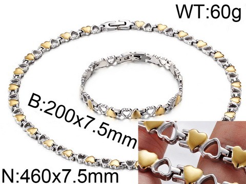 - Stainless steel bracelet necklace heart-shaped gold hollow jewelry set