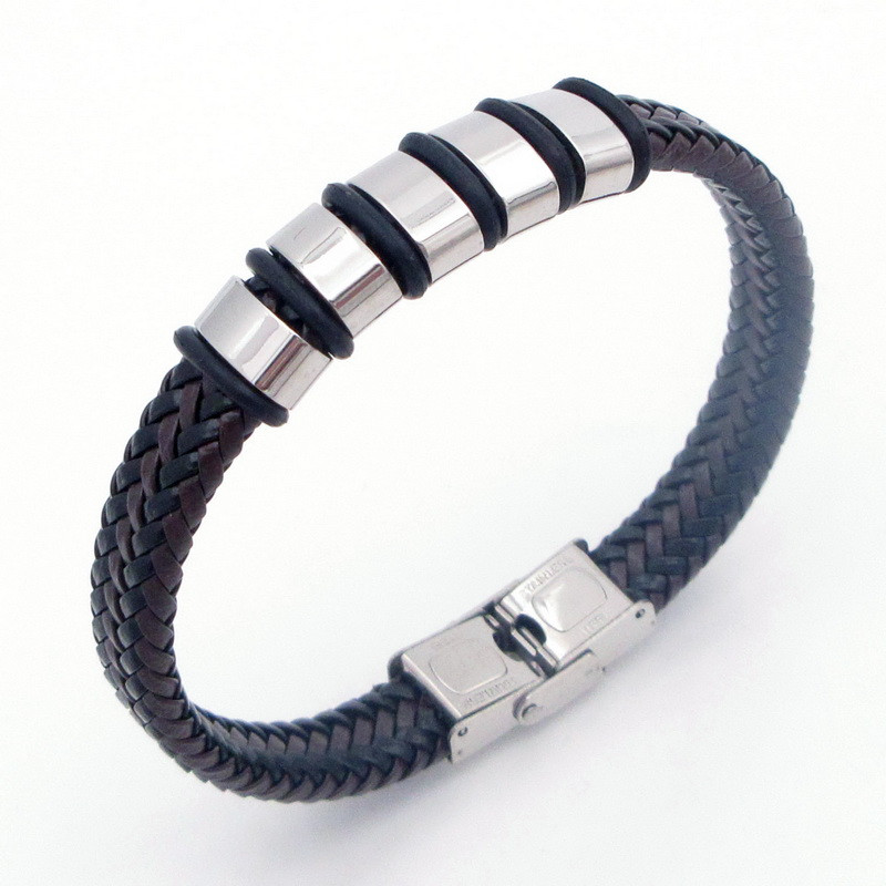- Stainless Steel Leather Bracelet