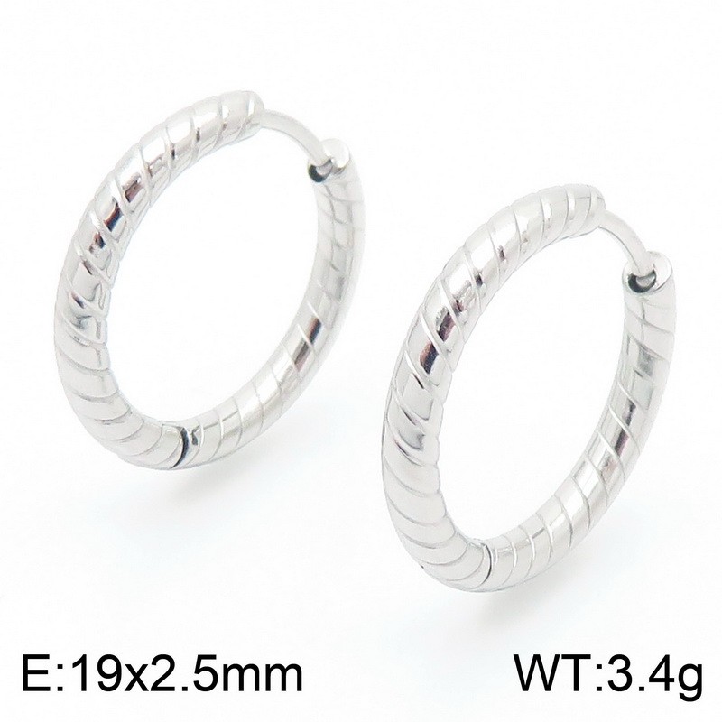 Women 19mm Stainless Steel Striped Round Clip-on EarringsWholesale Price:
