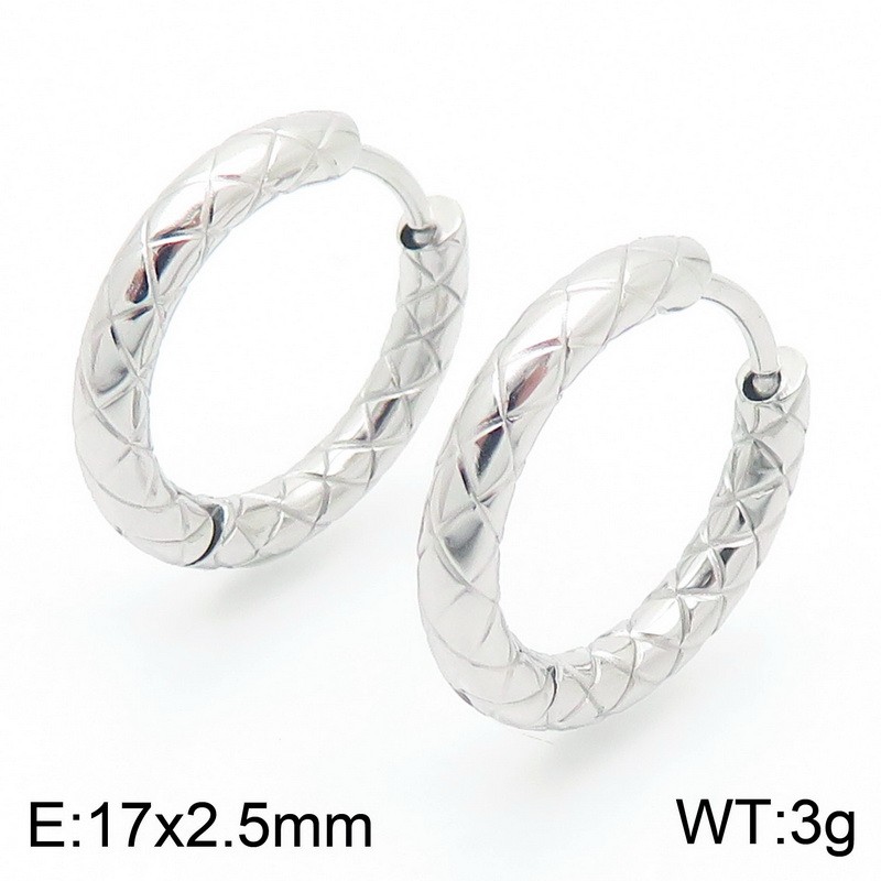 Women 17mm Stainless Steel Net Mark Round Clip-on EarringsWholesale Price: