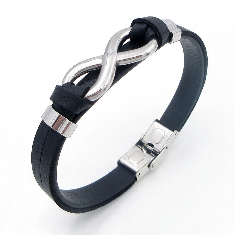 - Stainless Steel Leather Bracelet
