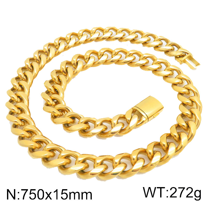 15mm Wide Gold Color Cuban Chain Necklace for Men Stianless Steel Fashion JewelryKN288115-KJXWholesale Price: