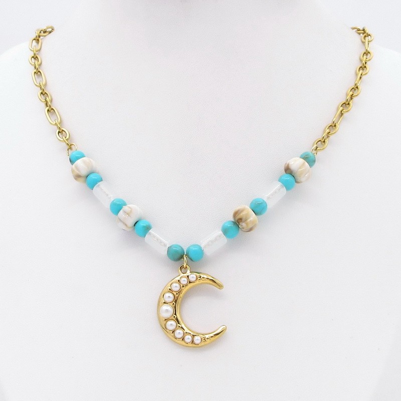 Stainless Steel Stone NecklaceKN226189-DXWholesale Price: